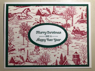 I love the Toile Christmas bundle because the Cardinal can be used any time of the year and the Toile Tidings designer paper is great for the winter months, not just Christmas time. Which by the way there are still 4 more days of Christmas to celebrate. The words on both these cards are from the Itty Bitty Christmas set. I know I will use the 18 different stamps from this set over and over on my Christmas cards for years to come.